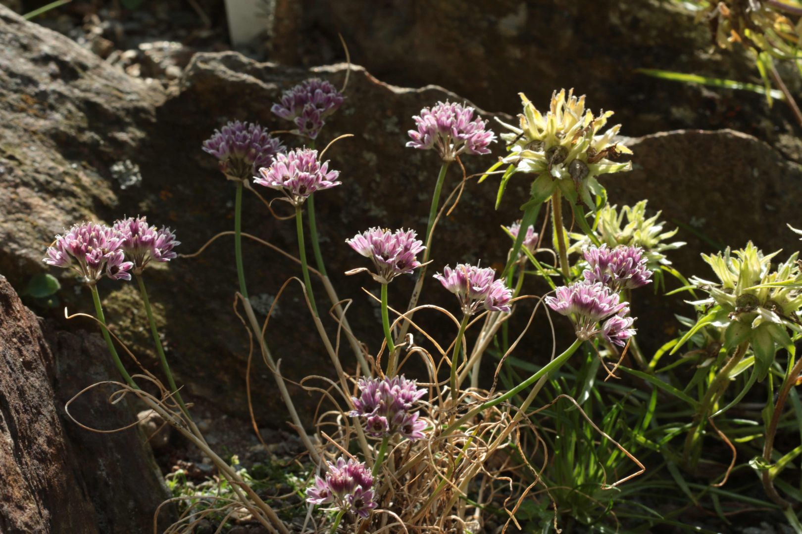 Allium brevicaule Je velice pěkný drobný česnek pocházející z vyšších oblastí Anatolie. Pouze do 10 cm vysoký česnek. Má poměrně husté růžovobílé květenství. Vhodný do skalek na plné slunce. Pěstujeme jej v dobře propustném substrátu na slunečném místě ve skalce. Nezdá se být plevelivý, spíš při vlhčích zimách vyhnívá. Množí se výsevem a přisazuje cibulky.