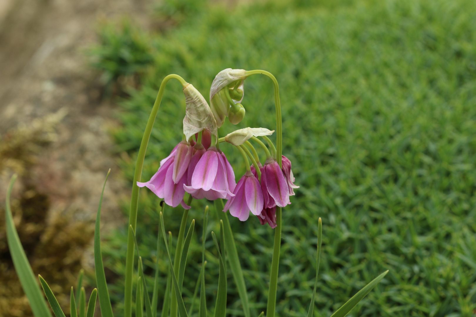 Allium narcissiflorum je česnek rostoucí na alpských loukách. Snáší mírný polostín, propustnou půdu s příměsí vápence. Kvete růžově od června do července ve výšce cca 20 - 25 cm. Vytváří trsíky šedo-zelených úzkých listů. Zatahuje. U nás bezproblémový česnek. Cibulky sázíme na podzim do hloubky cca 5-8 cm. Pokud máte rostliny v kelímku, lze výsadbu provést i na jaře.