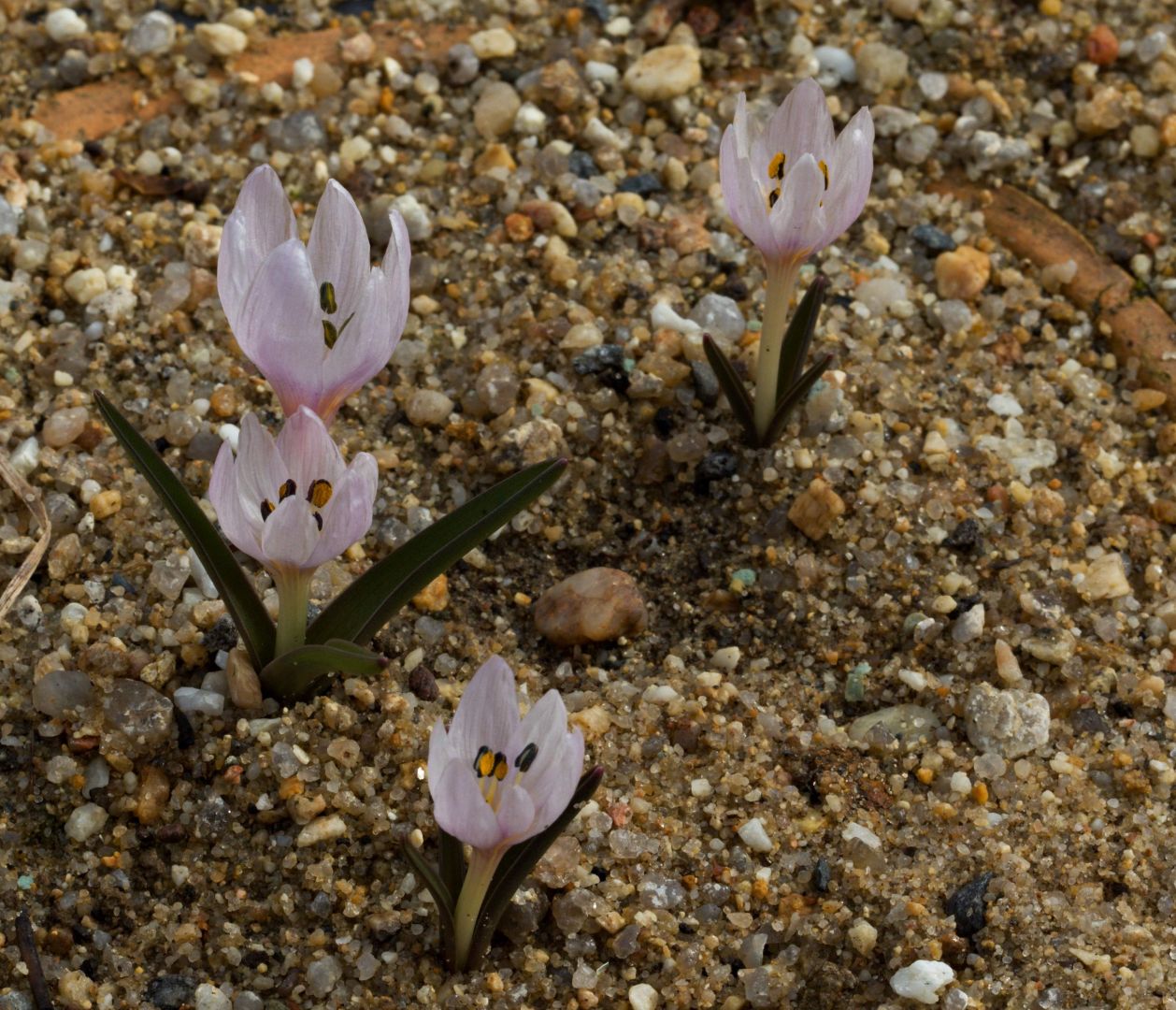Colchicum triphyllum je jarní světle růžově kvetoucí ocún, dorůstající výšky do 10 cm. My jsme se sním setkali poprvé na Mt.Helmos, byl to vůbec první jarně kvetoucí ocůn, který jsme viděli v přírodě, taková setkání se nezapomínají, jako kdyby v tajícím sněhu byly rozsvíceny růžové svíčky. Jeho další rozšíření je na několika dalších místech Řecka, v Turecku, Bulharsku,Ukraině, severní Africe....atd. Pěstování není zcela bezproblémové, jsou roky ve kterých vykvétá z jedné cibulky i 5 květů a dalším rokem to vypadá, že je to jeho poslední jaro. Nemá rád úplné vypečení. Pěstujeme jej v propustné půdě s letním krytem za občasného mírného zalití. Množí se u nás pouze semeny, která vytváří podzemí a velice neochotně klíčí i při okamžitém výsevu. Cibulky nepřisazují vůbec. Ale určitě se najde klon, který přirůstá, pouze jsme na něj neměli zatím štěstí.
